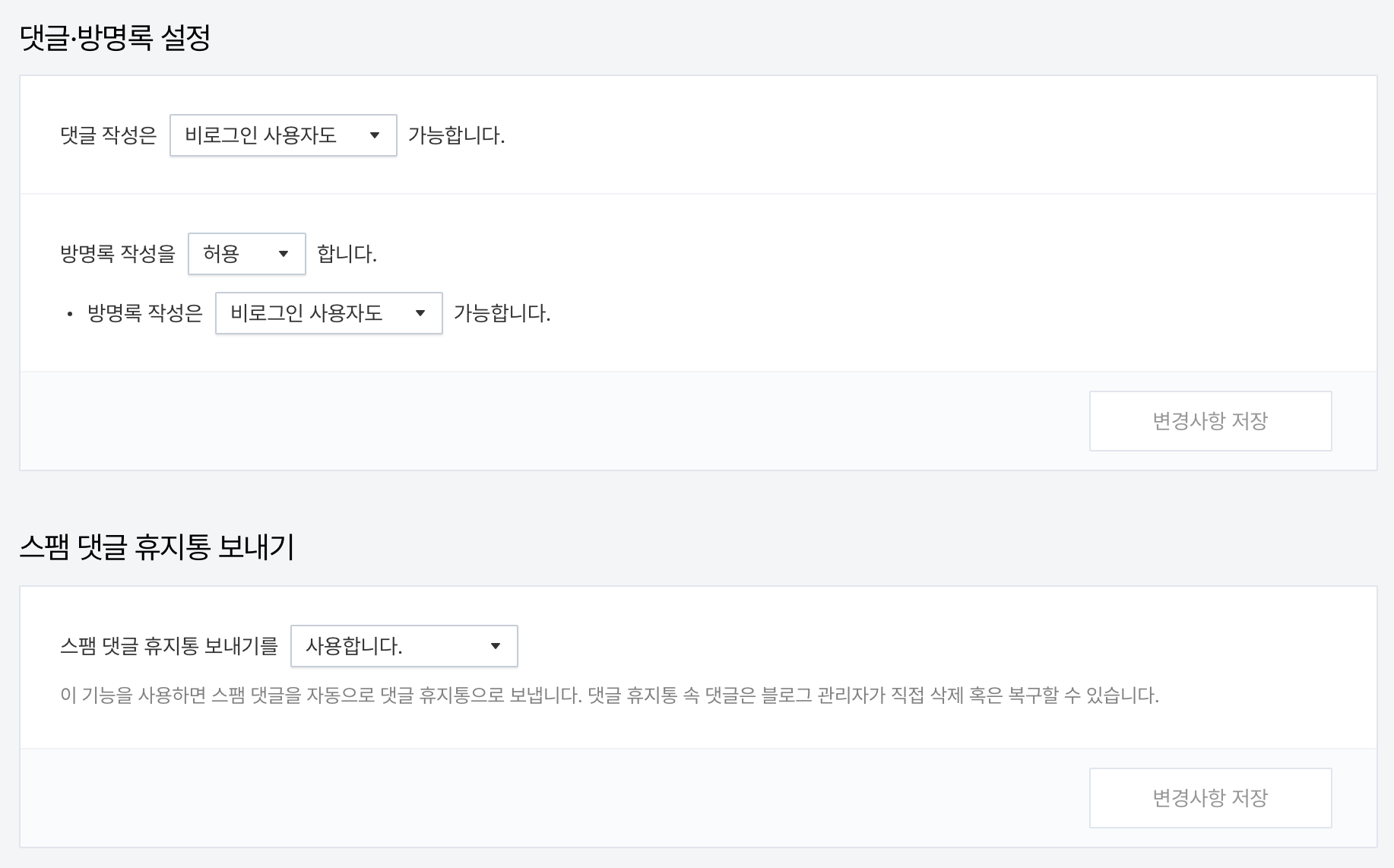 티스토리 앱(App)에서는 이 기능을 설정할 수 없고, PC의 웹(Web)에서는 설정할 수 있다.