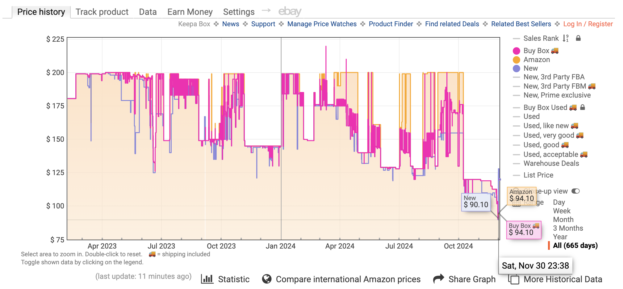 하지만, 내가 구매한 뒤 11월 마지막 금요일엔 아마존에서 블프 세일하느라 90불에 팔았었나보다.