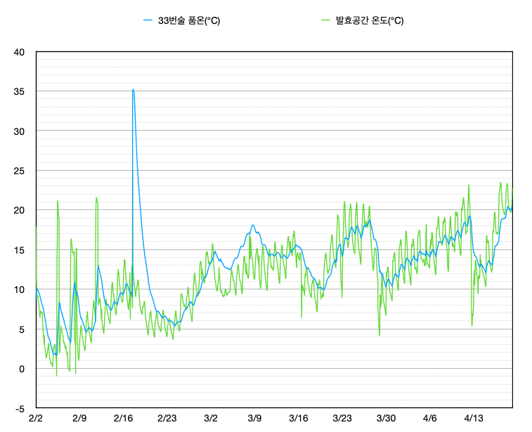- 품온 34.7℃, 발효공간 25.0℃