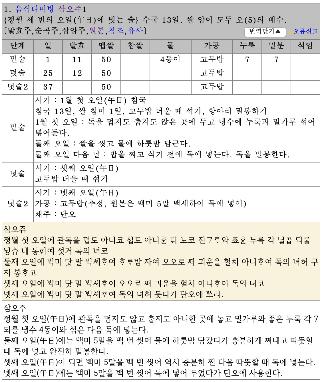 [참조.2] 한국술고문헌DB, http://koreansool.kr/ktw/php/print_table.php?table=SEARCH&_search_txt=삼오주